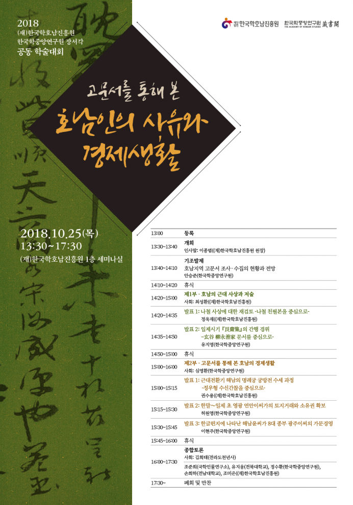 2018년 (재)한국학호남진흥원 공동 학술대회: 고문서를 통해 본 호남인의 사유와 경제생활