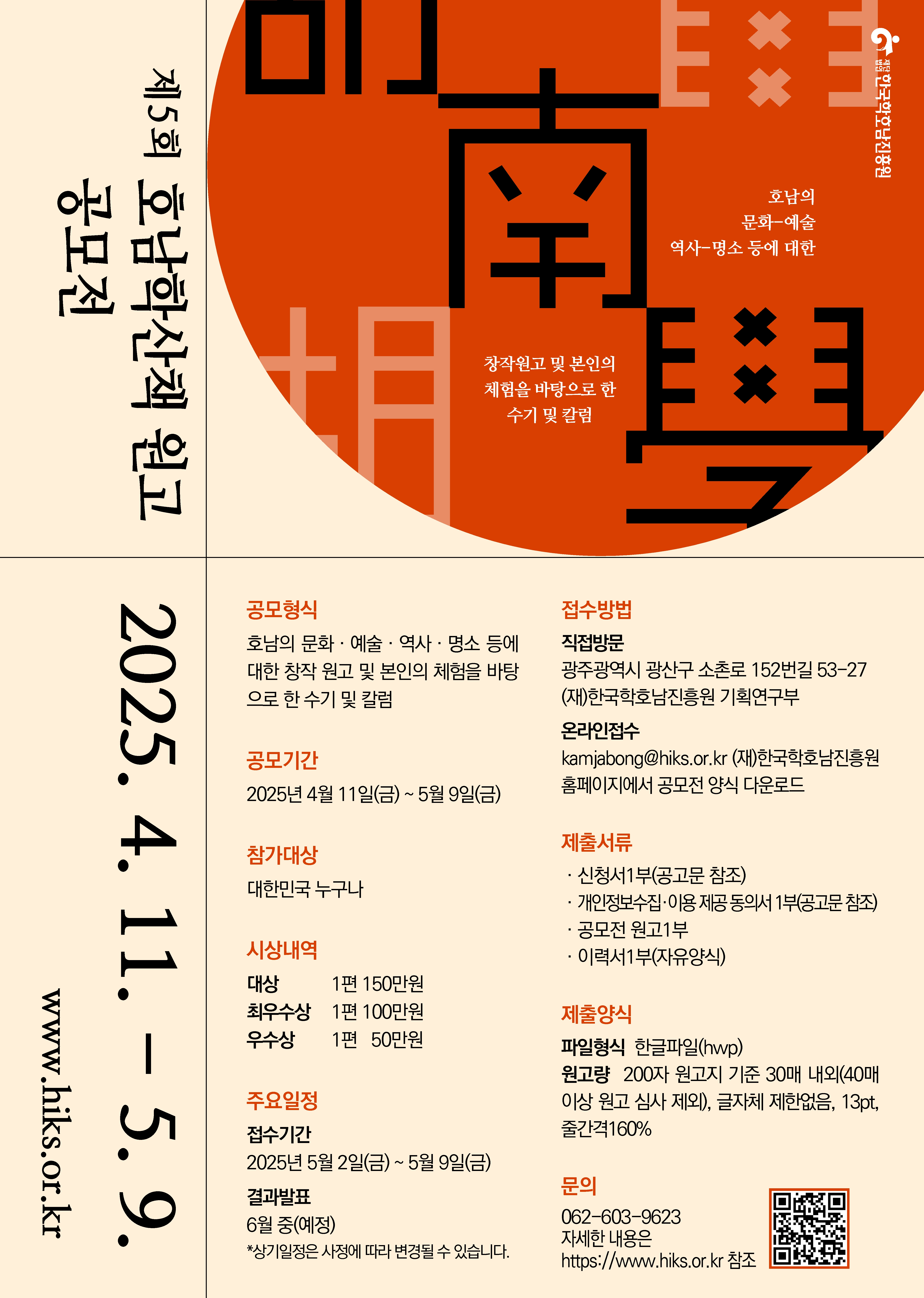 ○ 공모형식 : 호남 인문학에 대한 수기 및 칼럼