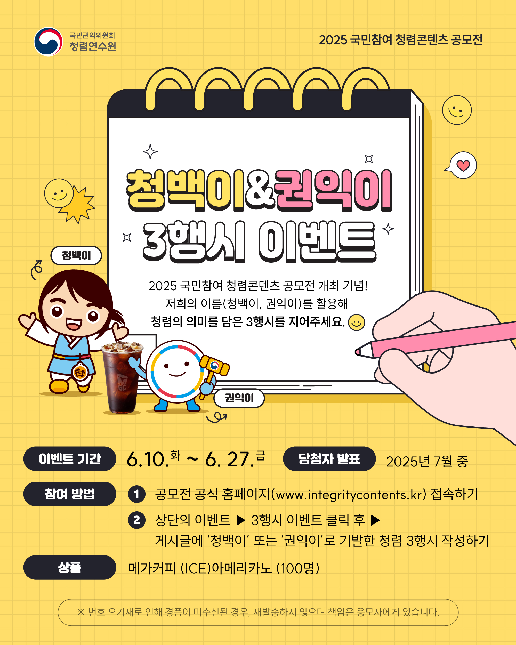 (국민권익위) 2025년 국민참여 청렴콘텐츠 공모전 안내