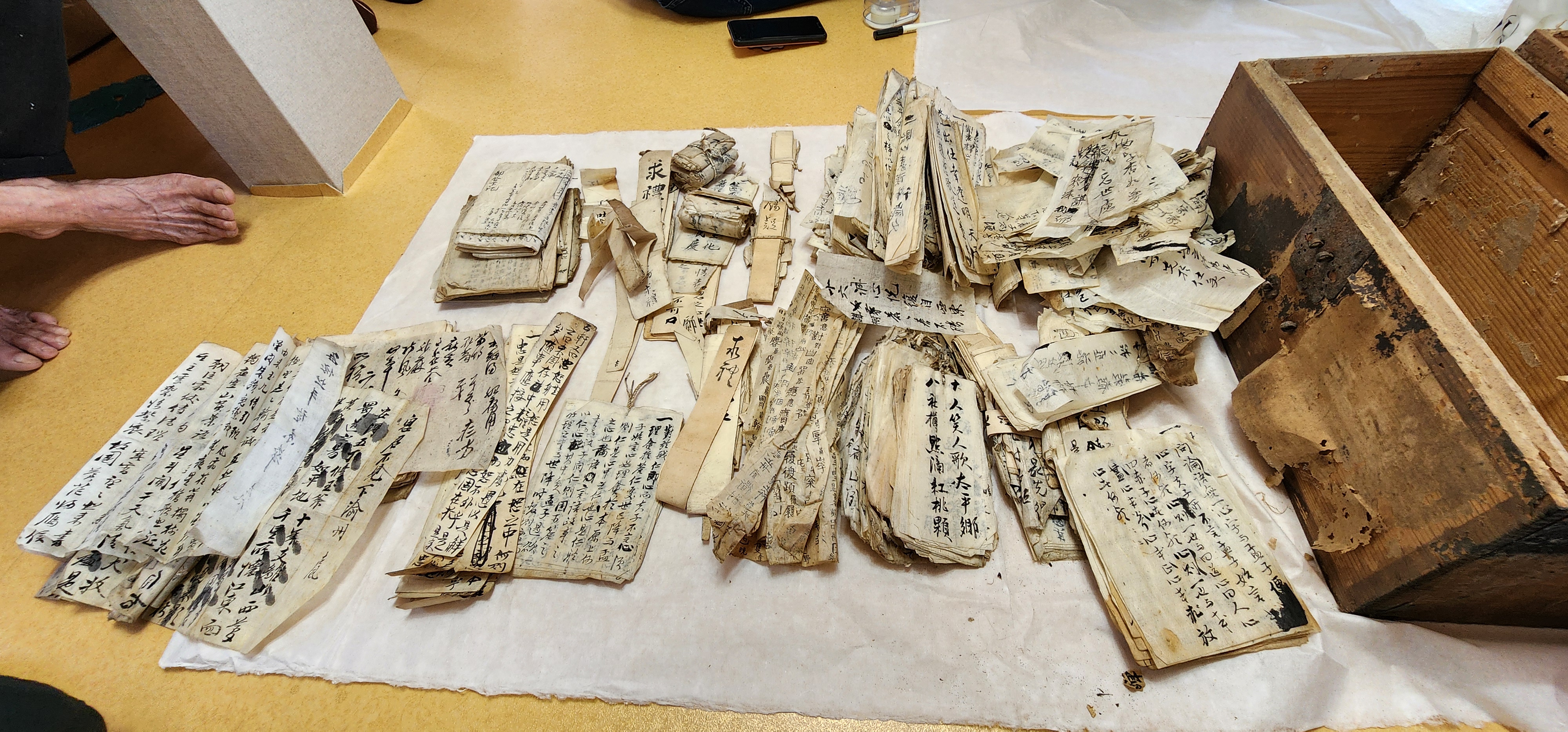 역사연구자 최아리 선생의 조사 추진으로 구례군에 거주하는 정윤섭 선생의 소장자료를 수집하게 되었다. 최아리 선생이 소장자 정윤섭 선생을 여러 번 설득 끝에 오랫동안 보관하던 고문헌 자료를 무난하게 한국학호남진흥원으로 옮겨 올 수 있게 되었다. 정윤섭 선생은 해주정씨 농포공파로 충의공 정문부(鄭文孚: 1565~1624) 후손이다. 이번 자료는 이미 2020년 7월에 순천대학교 박물관 측에서 자료를 조사하고 목록을 작성했다. 수집 날, 폭염보다 염려스러운 점은 고문헌 상태이다. 긴 시간 습한 곳에 보관한 상태라 눅눅한 냄새가 심했고 좀벌레가 꽤 많았다. 본원으로 옮겨 온 자료는 다음날 포쇄와 먼지, 해충 제거 작업을 하였다. 기탁한 자료는 총 298점으로 고문서 160점, 고문서 137점, 유물 1점이다. 수집한 자료 중 호구단자와 과시(科試) 문서가 상당하다. 본원에서 상세 분류하면 그 수량은 더욱 늘어날 것이다. 기탁한 자료는 고문헌 연구 사업에 여러 방면으로 활용할 것이다.