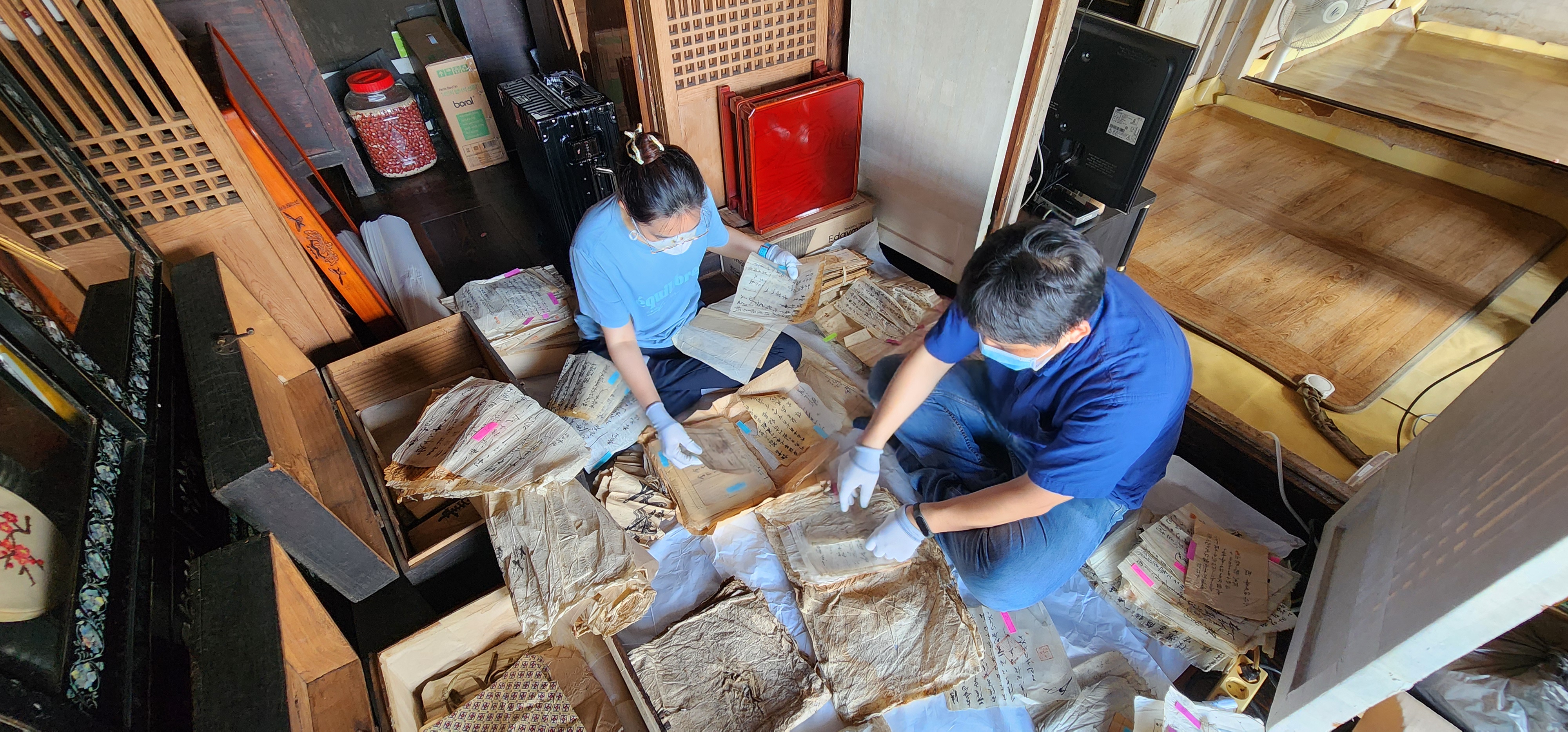 삼복더위 중 가장 덥다는 중복이라 강렬한 햇볕을 쬐는 날, 창녕조씨 강재(조사원) 종가에 자료를 수집하러 담양군으로 갔다. 너른 마당에 떡하니 서 있는 고택은 특이한 구조로 지어졌다. 시쳇말로 ‘복층’이 있다. 복층에 보관하던 자료를 마루에 내려놓고 수집 절차를 진행하였다. 일정을 미룬 채 수집 날에 맞춰 서울에 사는 소장자 조양 선생도 내려왔다. 몸에 땀이 흠뻑 젖을수록 일은 수월하게 진행되었다. 집의 특이한 구조는, 자료를 “무탈하게 보존하기 위함이었다.”고 소장자의 모친께서 말씀해 주셨다. 덧붙여 “남편이 3년 전에 돌아가셨지만, 내가 지금까지 지키고 있다.”고 하셨다.