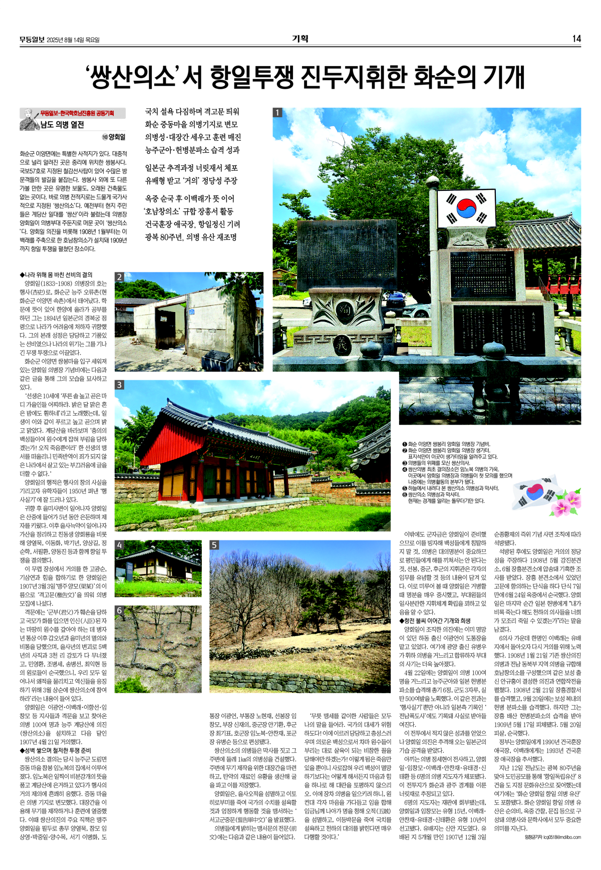 '쌍산의소'서 항일투쟁 진두지휘한 화순의 기개 첨부이미지 : 20250814-10 양회일.jpg](/attach/board/2/content/20250819110435UovwAeYOhqSYTGQtzhUd.jpg)