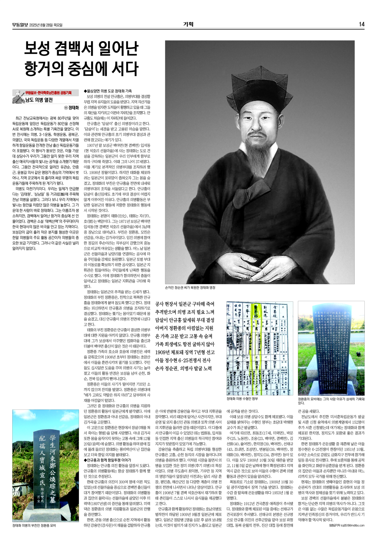 치열하게 항전했던 보성 의병의 선구자 첨부이미지 : 20250828-11 정태화.jpg](/attach/board/2/content/20250904095236BXvGszJCa4A4oHVP11Zv.jpg)