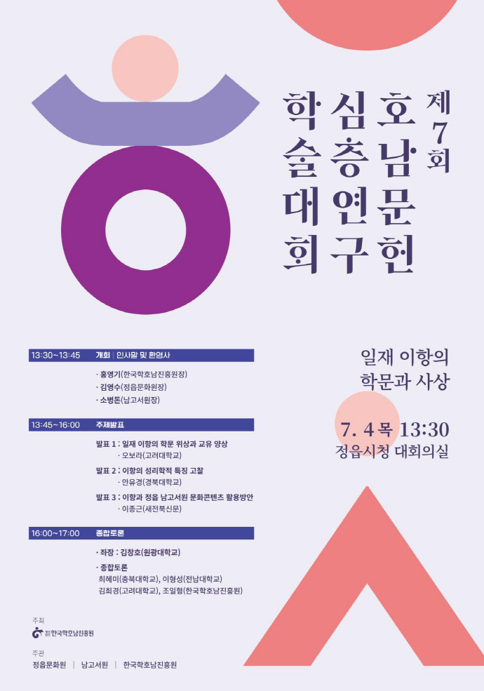 한국학호남진흥원은 4일 오후 1시 30분 정읍시청 대회의실에서 제7회 호남문헌 심층연구 학술대회를 개최한다.