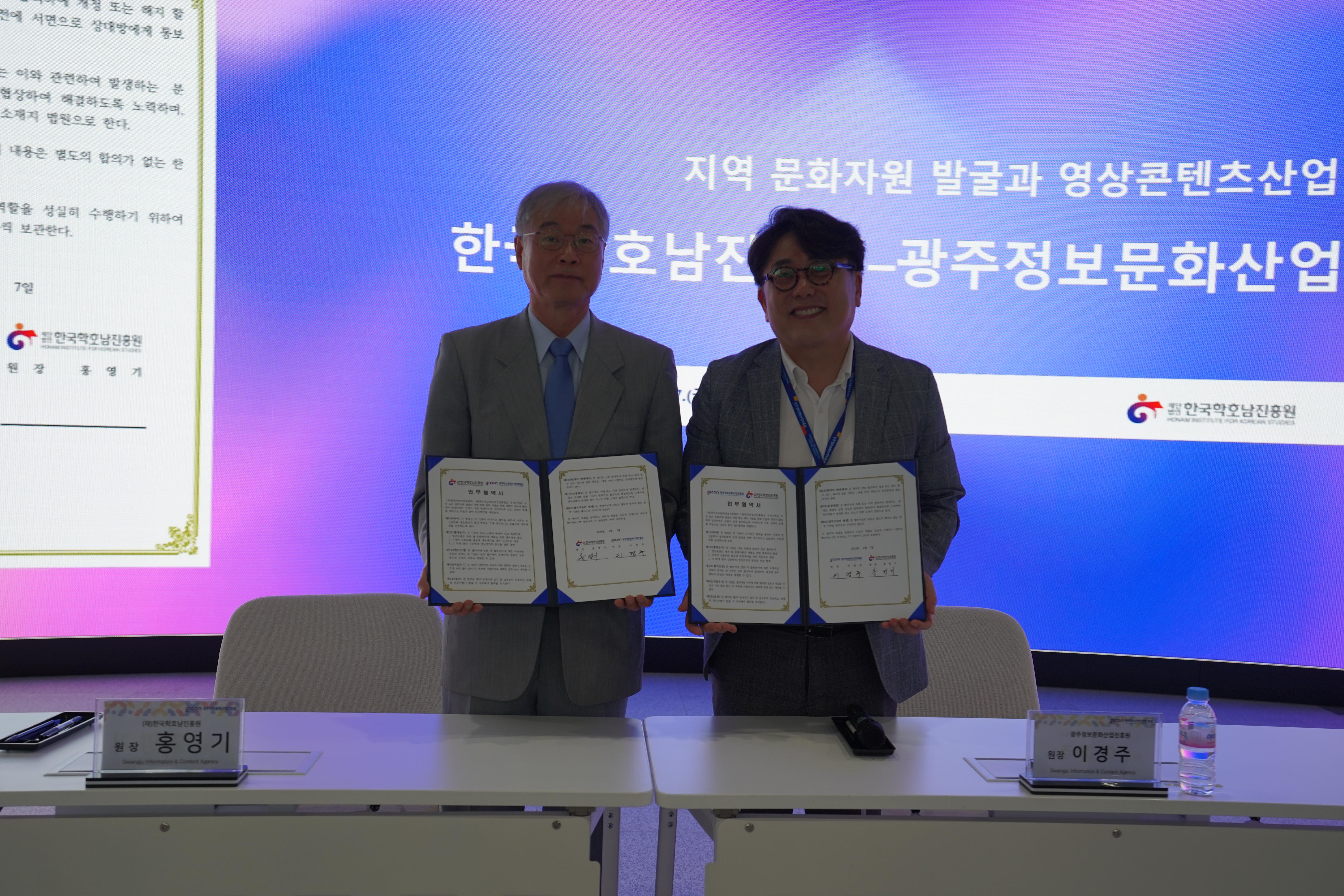 업무협약(MOU)체결_ 광주정보문화산업진흥원 조회수 : 545 첨부파일 정보문화 1.jpg (2.82 MB) 미리보기 다운로드 첨부파일 정문문화 2.jpg (2.74 MB) 미리보기 다운로드 업무협약(MOU)체결_ 광주정보문화산업진흥원 - 일시 : 2024. 6. 7.(금) 11:00 - 장소 : 광주정보문화산업진흥원