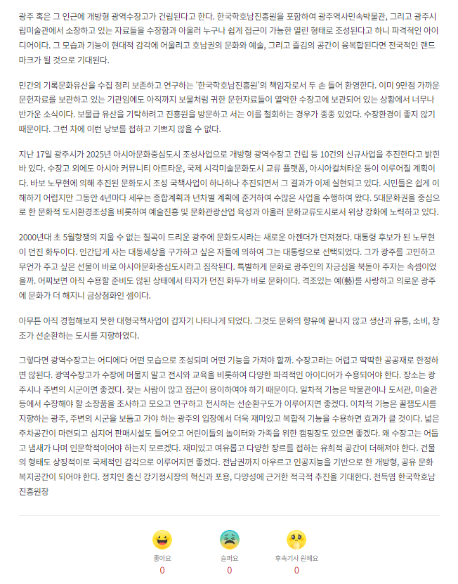 [기고] 개방형 광역수장고 건립에 거는 기대 조회수 : 615 첨부파일 주석 2023-11-23 104836.png (235.30 KB) 미리보기 다운로드 첨부파일 주석 2023-11-23 104923.png (217.94 KB) 미리보기 다운로드 본문 기사링크 : http://www.mdilbo.com/detail/AjBTxA/707217