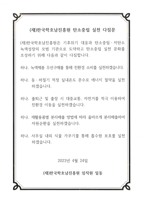 · 행 사 명 : (재)한국학호남진흥원 탄소중립 실천 다짐식