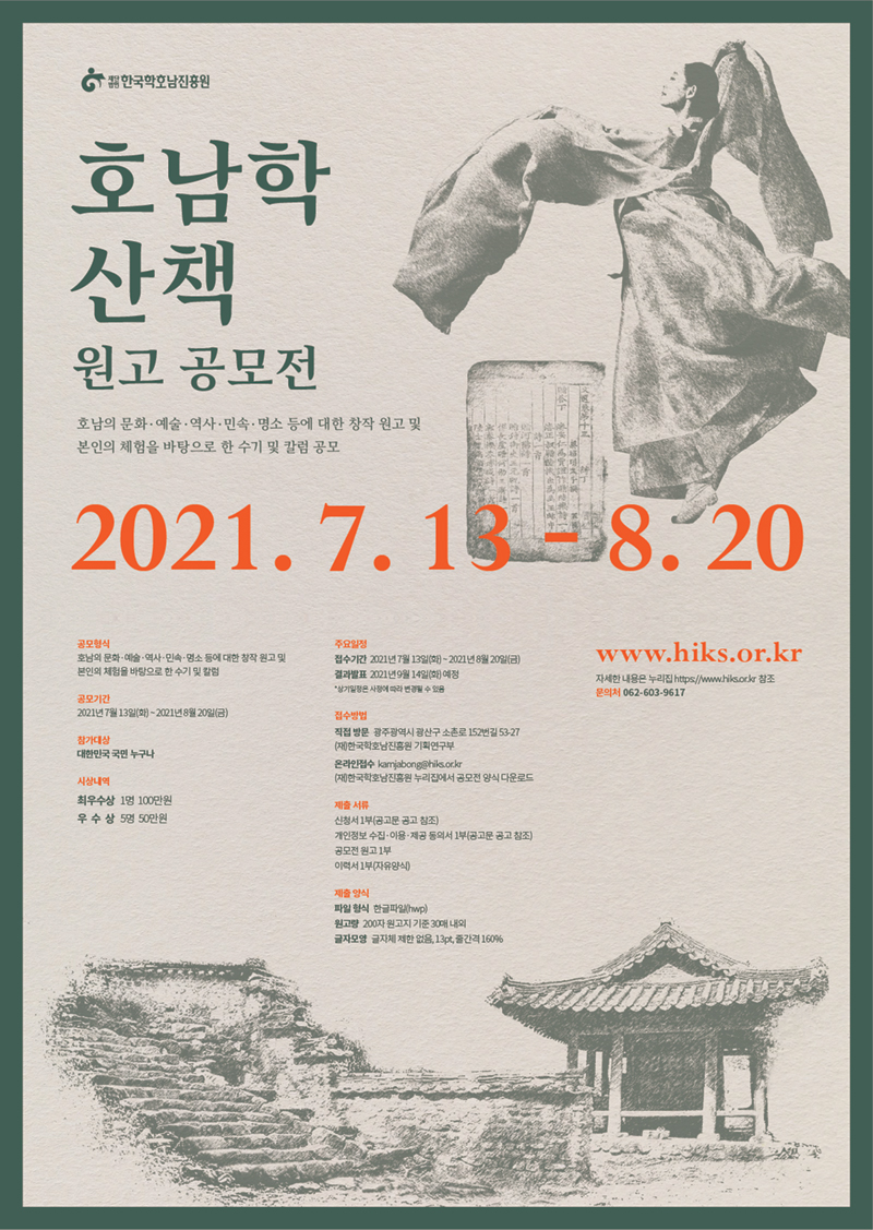 공모형식 : 호남의 문화·예술·역사·민속·명소 등에 대한 창장 원고 및 본인의 체험을 바탕으로 한 수기 및 칼럼